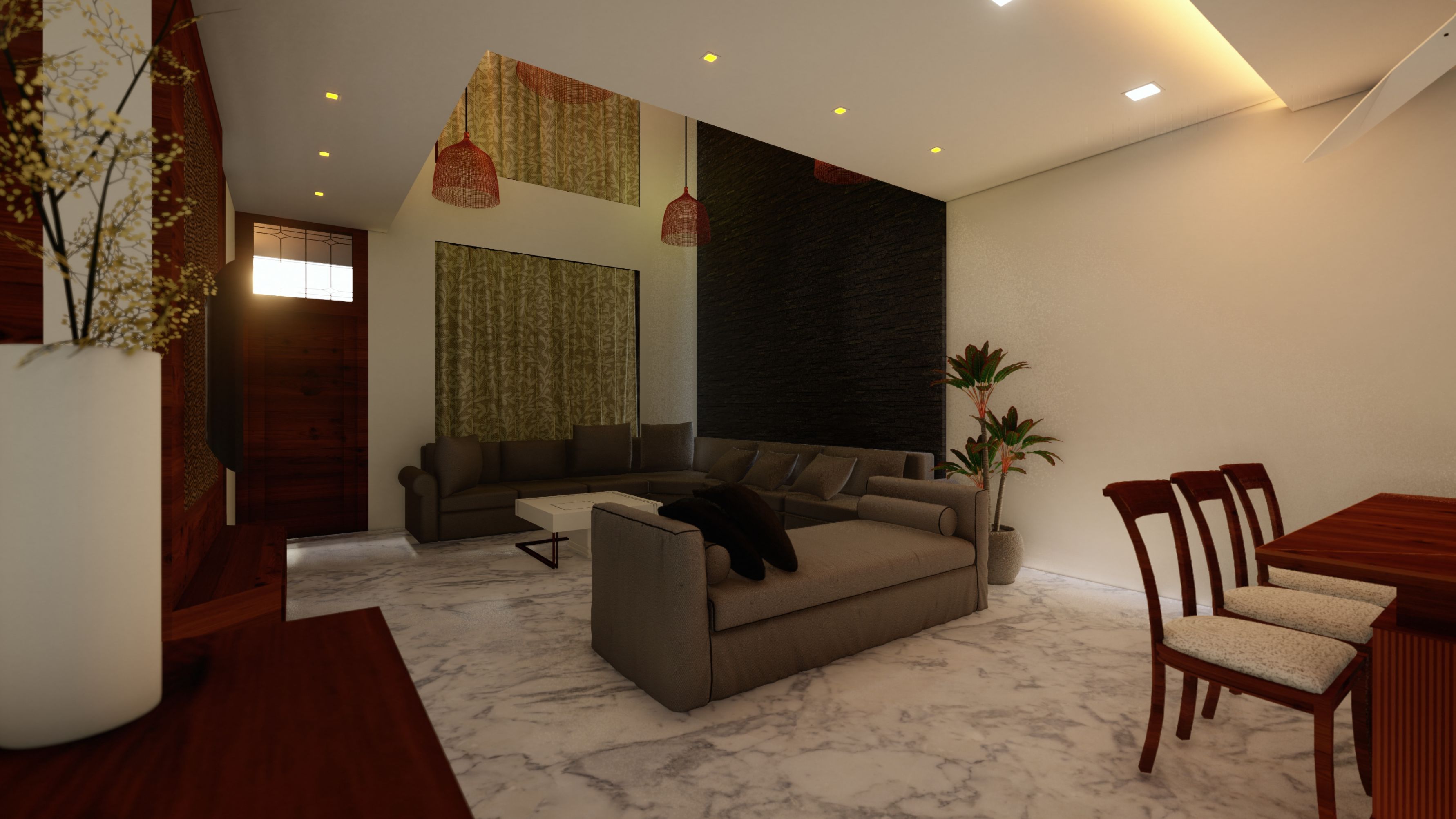 The key objective of the client was to design a house which has ample open spaces to facilitate good ventilation and to brighten up space through natural light.